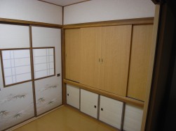 介護・バリアフリー 福井市 K邸 介護リフォーム 2009.03.17 介護用に部屋を改装しました。 増築 リフォーム前 平屋で木が生い茂り日差しが入りにくい状況でした。 リフォーム後 浴室、洗面所スペース分を増築しました。天井高が取れて、屋根勾配が少なくて済むたて平葺きで仕上げました。外壁は周りに合わせてトタンを貼りました。 右奥に見える扉の向こうが増築した洗面所と浴室となります。介護用ベットを置いても邪魔にならない位置に扉を設置して、寝室から移動距離も少なく湯冷めもしなくなるでしょう!! 浴室 リフォーム前 別場所にある既存の浴室は狭く、床が滑りやすいという事でした。 リフォーム後 今回はTOTOのスプリノを採用。浴槽も寄りかかり部分が直角に近く病院の浴槽仕様に近い商品を選択。安全性が高く、床も滑りにくく柔らかいので、手やひざを突いても痛くないソフトからり床仕様。手摺はお客様の使用高さを実物を用いて確認して設置したので「とても使い易い」とおっしゃっていました。ちなみに手摺部分は介護保険を利用したので費用負担は1割で済みました。 浴室の入口は段差なしで、扉も引き戸なので開け閉めに負担が少なく浴室の危険性を緩和してくれます。 洗面所 リフォーム前 別場所にある既存の脱衣場は狭く、浴室への段差等も有り、介護が出来ない状況でした。 リフォーム後 洗面所もスペースが広いので、椅子を置いても楽に動けるので介護がし易い広さを確保しました。右奥に洗濯機が置ける様に給排水の設備は準備して置きました。 入浴時の温度の変化を少なくする為にも脱衣場にもTOTOの暖房機「三冠王」を設置して、冬場は暖かく、夏場は涼しい風が出て、ドライヤー機能もあるのでお風呂上りも操作ボタンひとつで大丈夫!! 和室 リフォーム前 和室で湿気が多少影響して薄暗い環境でした。 リフォーム後 畳敷きだった和室も介護用のベットを設置出来る様に傷に強い床フロアにしまた。足元がしっかりするので杖を付いても安心です。 もともと障子が入っていた出窓部分にはYKKaPの内付け樹脂サッシ「プラマードU」を設置しました。断熱、防音、防犯の効果を発揮して、見た目は障子そのものですが障子を貼り替える必要も無く安心です!! 収納 リフォーム前 収納部分が少なく増やして欲しいというご要望でした。 リフォーム後 既存のスペースを利用して扉を設置しました。 重い物を収納しても大丈夫な様に床を補強して棚板も設置しました。 介護保険対応工事 リフォーム後 便器の立ち座りに便利なL型手摺。下地補強材も入れて全体重を掛けてもガッチリしています。握り棒はセーフティタイプで指形の凹凸があるので握った時に滑る事無く、しっかり掴まる事が出来ます。 リフォーム後 トイレ内での移動に役に立つようお客様の身長に合わせた高さで設置。木製なので触って冷たくなる事もありません。 福井市 T邸 改装工事 前の記事 福井市 Y邸 改装工事 次の記事